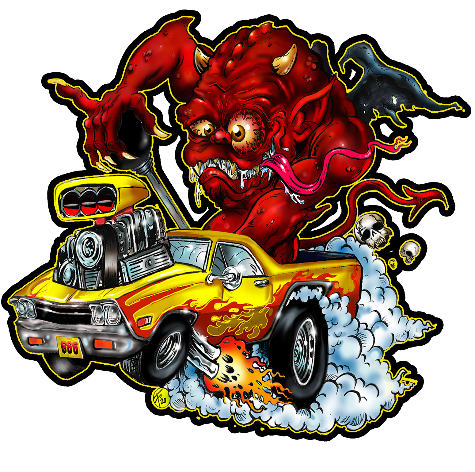 You've seen the print...heck you can still ORDER the print, but why not go a step further and add the companion sticker to it! That's right, Ozmo is back only in a more compact size so you can take him with you to work or play, as long as there is a nice clean surface to stick him too, it will so tell everyone around to don't mess with the best! Sticker comes securely packaged...so there is nothing to raise hell about!